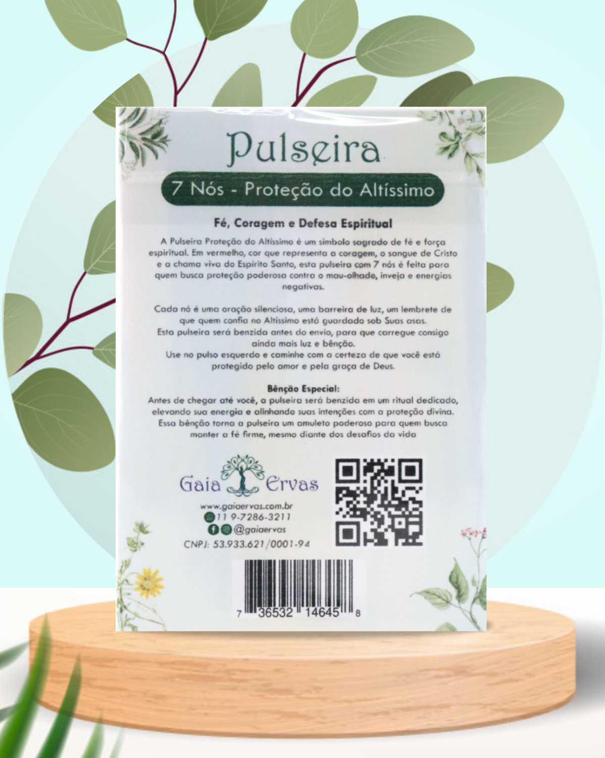 Sinta o poder da fé inabalável e a proteção divina em cada passo com a Pulseira 7 Nós Proteção do Altíssimo (Vermelha) da Gaia Ervas! Este símbolo sagrado é feito para quem busca uma defesa espiritual poderosa contra mau-olhado, inveja e energias negativas.